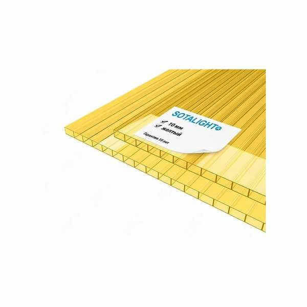 Сотовый поликарбонат 10 мм SOTALIGHT желтый 2100х12000 мм - это прочный и легкий материал, который отлично подходит для использования в различных строительных и дизайнерских проектах. Поликарбонат обладает высокой прочностью и устойчивостью к воздействию внешних факторов, что делает его идеальным выбором для создания надежных и долговечных конструкций.