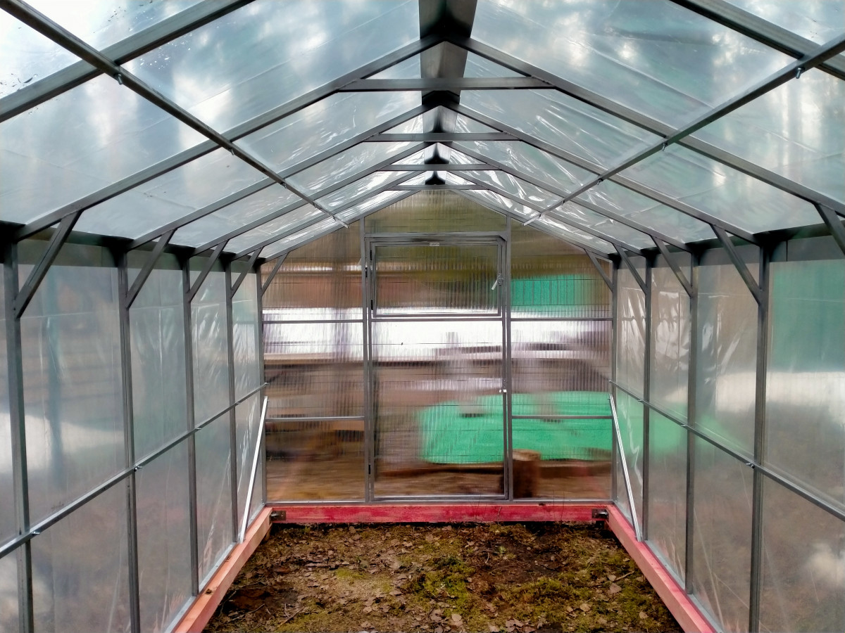 • практичный каркас с дверьми и форточками в каждом торце обеспечивает легкий доступ в теплицу и её проветривание;