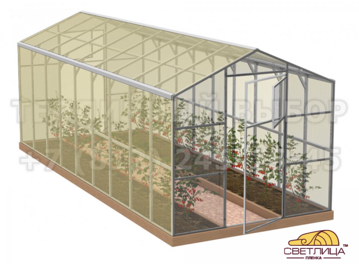 • укрывной материал - легендарная пленка «Светлица» толщиной 150 мкм, имеет уникальный состав, который делает ее прочной, эластичной и долговечной (не менее 7 лет без снятия на зиму);