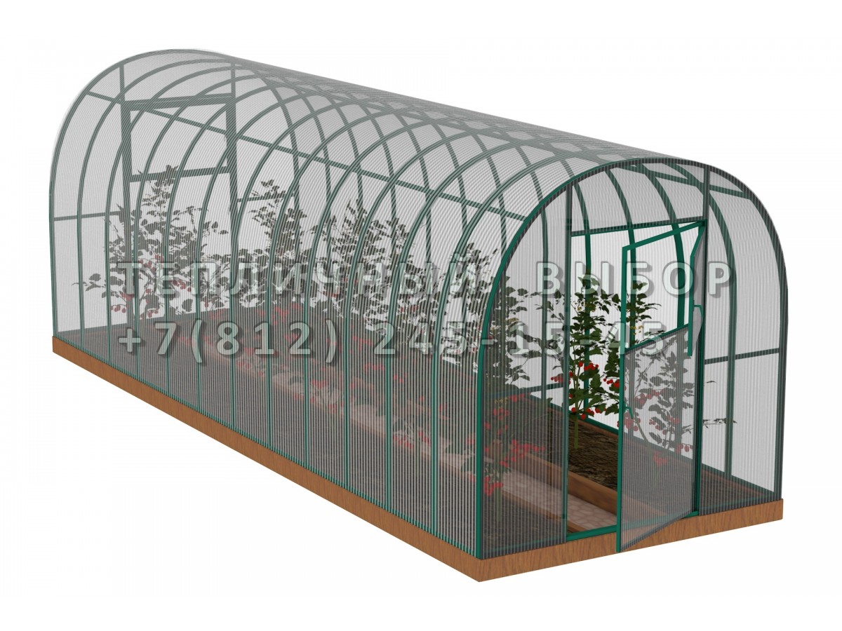 Теплица из поликарбоната Усиленная Арочная 2,1х12 h=2 м профиль 25х25 мм Зеленый
